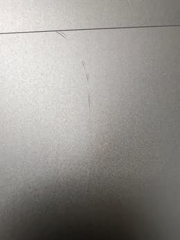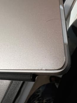 Das Surface ist funktionsfähig, aber keineswegs in einem "sehr guten" Zustand angekommen, sondern weist dicke Kratzer an der Oberseite auf. Von wegen "aus 20 cm Entfernung nicht sichtbar"! Selbst das Display hat Schäden, einen Kratzer und eine richtige Macke am unteren Rand. Im Betrieb fallen beide zum Glück aber nicht auf und die Außenseite werde ich mit einer Folie abdecken.
