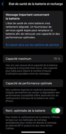 Alles ist perfekt, außer dem Akku, dessen Kapazität 78% beträgt... obwohl backmarket und der Händler sich verpflichtet haben, dass es mindestens 80% sein müssen! Das ist kein großer Unterschied, aber es bedeutet, dass sie bereits auf dem absteigenden Ast ist, ich beobachte bereits eine sehr schnelle Entladung der Batterie, obwohl ich sie gerade erst gekauft habe... 😣 ich muss zugeben, dass ich enttäuscht bin!